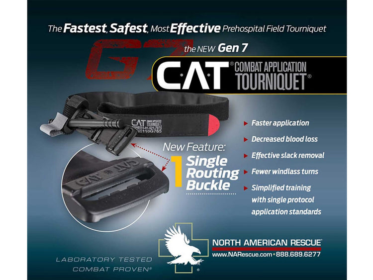 The patented C-A-T® is a true one-handed tourniquet proven to be 100% effective by the U.S. Army’s Institute of Surgical Research. Tests proved that the CAT completely occluded blood flow of an extremity in the event of a traumatic wound with significant hemorrhage.
